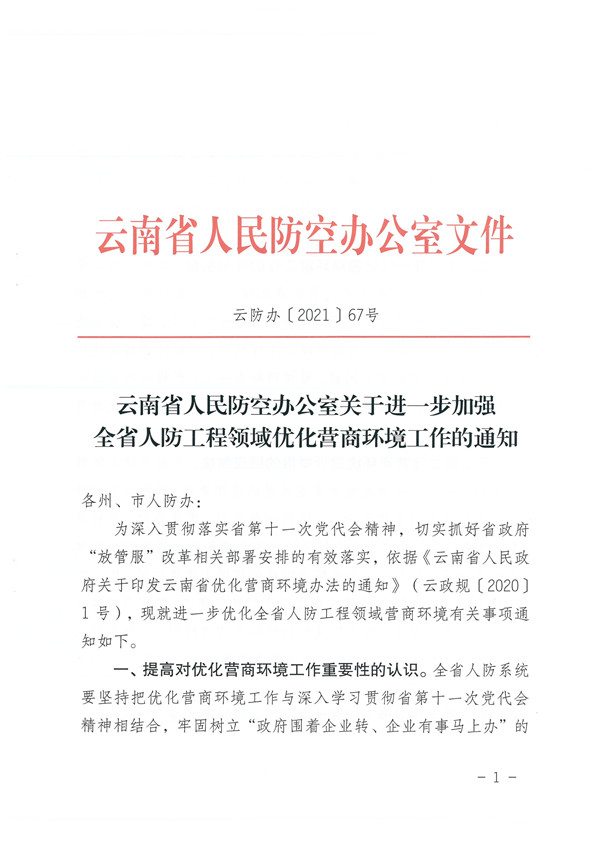 云南省人民防空办公室关于进一步加强全省bet3365vip_beat365唯一网址_365速发app下载平台注册工程领域优化营商环境工作的通知