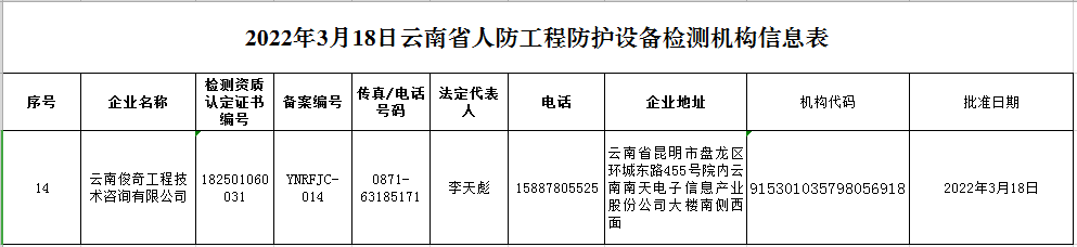 2022年3月18日云南省bet3365vip_beat365唯一网址_365速发app下载平台注册工程防护设备检测机构信息表