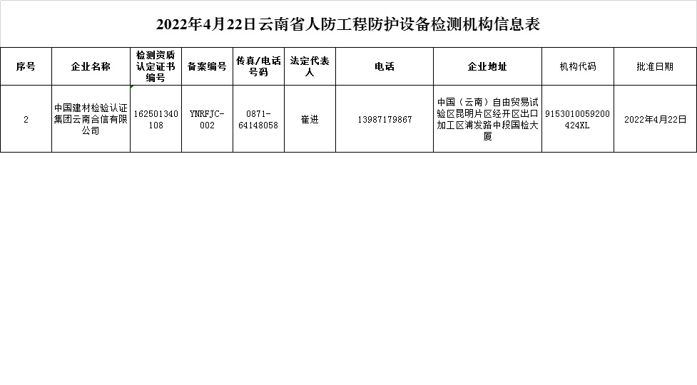 2022年4月22日云南省bet3365vip_beat365唯一网址_365速发app下载平台注册工程防护设备检测机构信息表