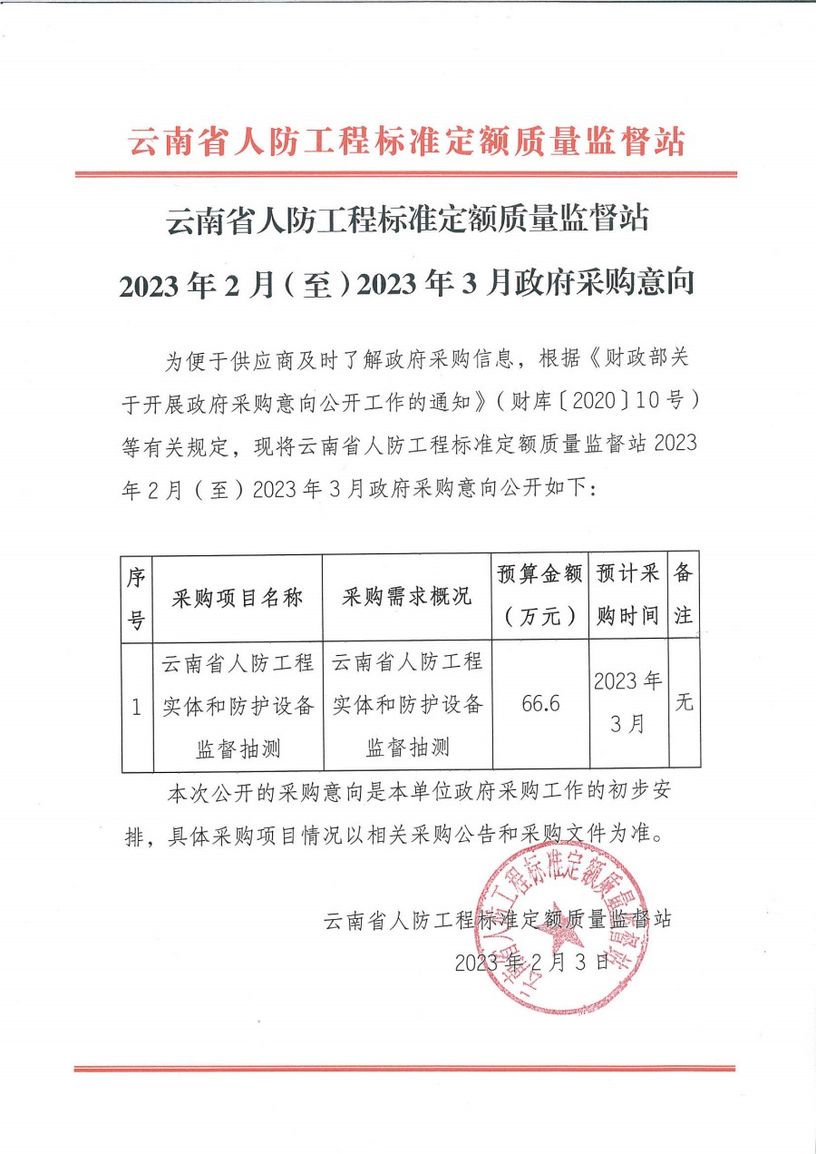 云南省bet3365vip_beat365唯一网址_365速发app下载平台注册工程标准定额质量监督站2023年02月(至)2023年03月政府采购意向